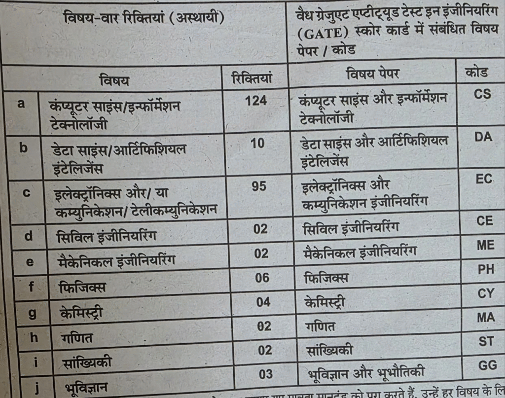 ये आवेदन निर्धारित योग्यता मानदंडों को पूरा करने वाले और वैलिड ग्रेजुएट एप्टीट्यूड टेस्ट इन इंजीनियरिंग (GATE) स्कोर कार्ड के साथ ग्रेजुएट एप्टीट्यूड टेस्ट इन इंजीनियरिंग (GATE) परीक्षा पास करने वाले भारतीय नागरिकों से आमंत्रित किए गए हैं.
