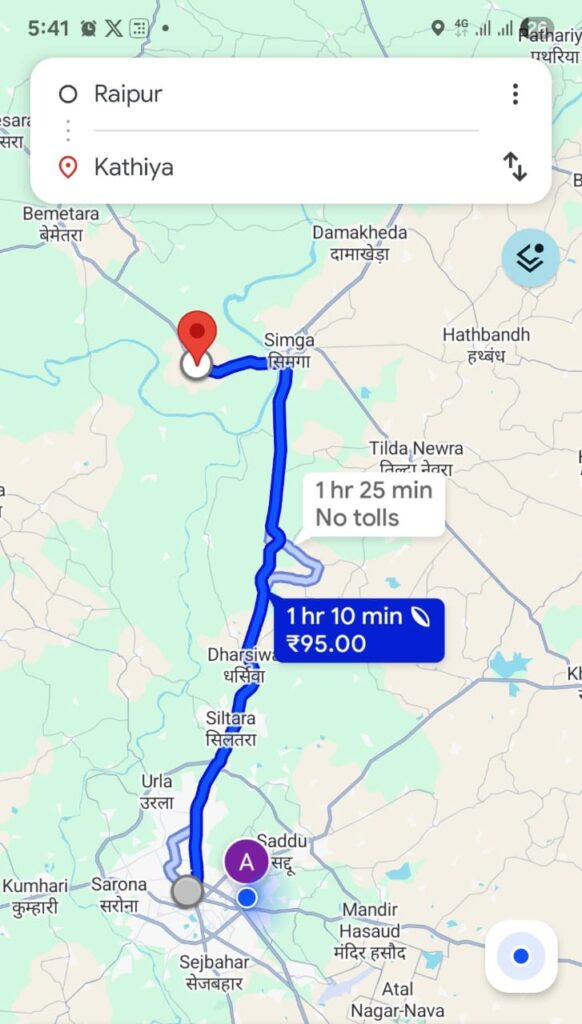 कठिया गाँव रायपुर- जबलपुर राष्ट्रीय राजमार्ग में सिमगा से 6 किलोमीटर बाद तथा बेमेतरा से 18 किलोमीटर पहले हैं. इसके पास ही प्रसिद्ध पर्यटन स्थल सोमनाथ हैं जहां शिवनाथ और खारुन नदी का संगम होता है. प्रतिवर्ष यहां मेला लगता है.