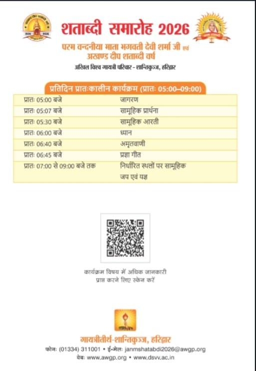 अखिल विश्व गायत्री परिवार द्वारा आयोजित यह समारोह आध्यात्मिक, सांस्कृतिक और सामाजिक चेतना का अद्भुत संगम बनेगा।